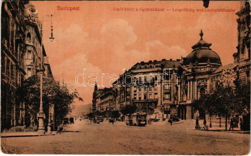 Budapest XIII. Lipót körút, Vígszínház, villamosok, Bioskop Mozgó mozi... https://www.darabanth.com/de/410-Fernauktion/410.0/Ansichtskarten/Ungarn~1500005/Budapest-XIII-Lipot-korut-Vigszinhaz-villamosok-Bioskop-Mozgo-mozi-szakadas-tear~II2544457