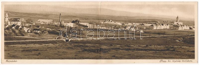 Beschreibung: Hajmáskér, M. kir. tüzérségi lövőiskola. Rigler Sándor kiadása. Kihajtható panorámalap / folding panoramacard (EK)