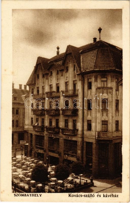 Szombathely, Hotel Kovács szálloda és kávéház, cukrászda (fl) https://www.darabanth.com/de/410-Fernauktion/410.0/Ansichtskarten/Ungarn~1500005/Szombathely-Hotel-Kovacs-szalloda-es-kavehaz-cukraszda-fl~II2193245