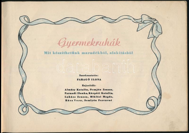 Gyermekruhák. Mit készíthetünk maradékból, alakításból. Szerk.: Faragó... https://www.darabanth.com/de/410-Fernauktion/410.0/Bucher/Bucher-Andere-kuriositaten~1000024/Gyermekruhak-Mit-keszithetunk-maradekbol-alakitasbol-Szerk-Farago-Ilona-Bp-1953-~II2546170