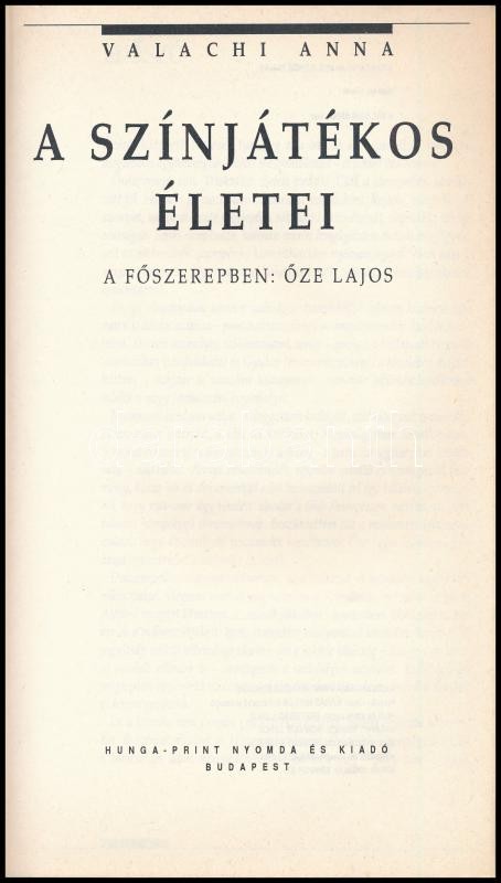 Valachi Anna: A színjátékos életei. Főszerepben: Őze Lajos. Bp.,1983,Hunga-Print. Kiadói papírkötés.