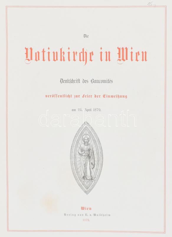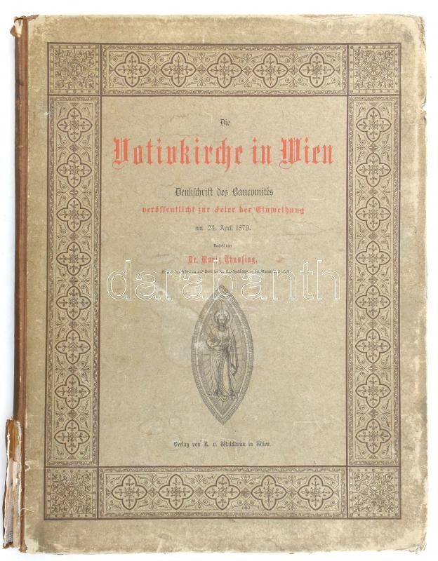 Beschreibung: Die Votivkirche in Wien. Denkschrift des Baucomités veröffentlicht zur Feier der Einweihung am 24. April 1879. Verfaßt: Dr. Moritz Thausing. Wien, 1879., R. v. Waldheim. Német nyelven. Fekete-fehér egészoldalas és szövegközti képanyaggal illusztrált. Kiadói félvászon-kötés, kopott borÃtóval, sérült gerinccel.