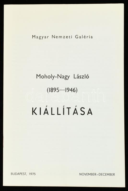 F. Mihály Ida: Moholy-Nagy László kiállítása. Bp., 1975, Magyar Nemzeti Galéria. 24 p + 10 melléklet. Hiányos, 1 színes melléklet hiányzik. Kiadói papírborítóban