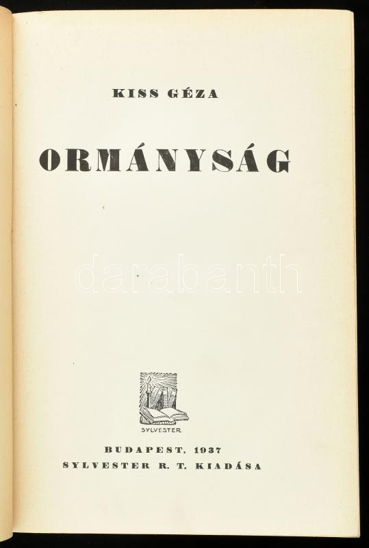 Kiss Géza: Ormányság. Bp., 1937, Sylvester Rt. Szövegközti és egészold... https://www.darabanth.com/de/410-Fernauktion/410.0/Bucher/Bucher-Reise-und-Ortgeschichte~1000005/Kiss-Geza-Ormanysag-Bp-1937-Sylvester-Rt-Szovegkozti-es-egeszoldalas-fekete-feher-illu~II2515199