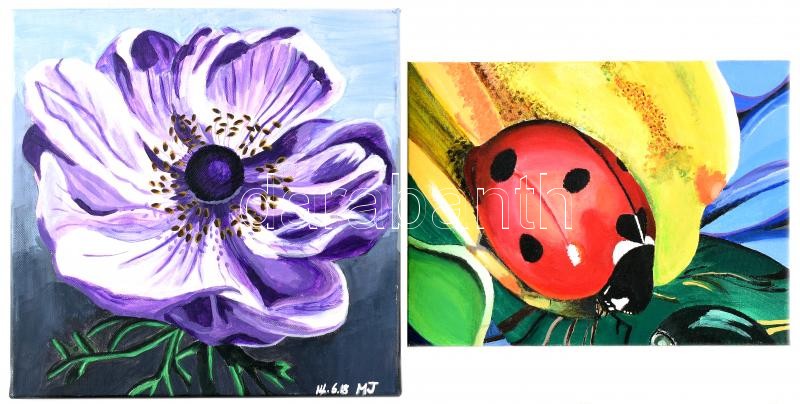 Beschreibung: 2 db modern, vászonra festett kép, az egyik jelzéssel, 30x30 cm és 30x22,5 cm