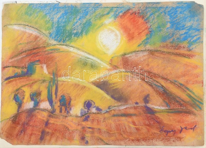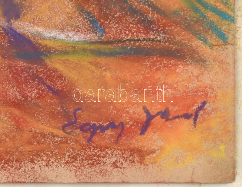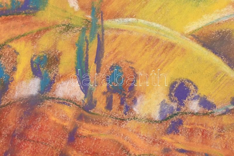 Egry József jelzéssel: Napfényes táj. Pasztell, papír, sérült, sarkaiban hiányos. Papírra kasírozva. 31x43,5 cm