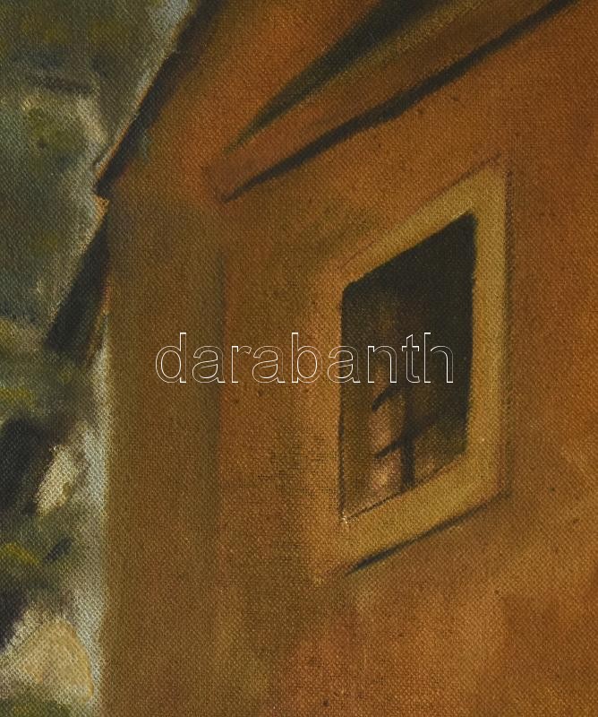 Olvashatatlan jelzéssel, Miséről távozók. Olaj, vászon, sérült, dekoratív sérült keretben. 80x60cm