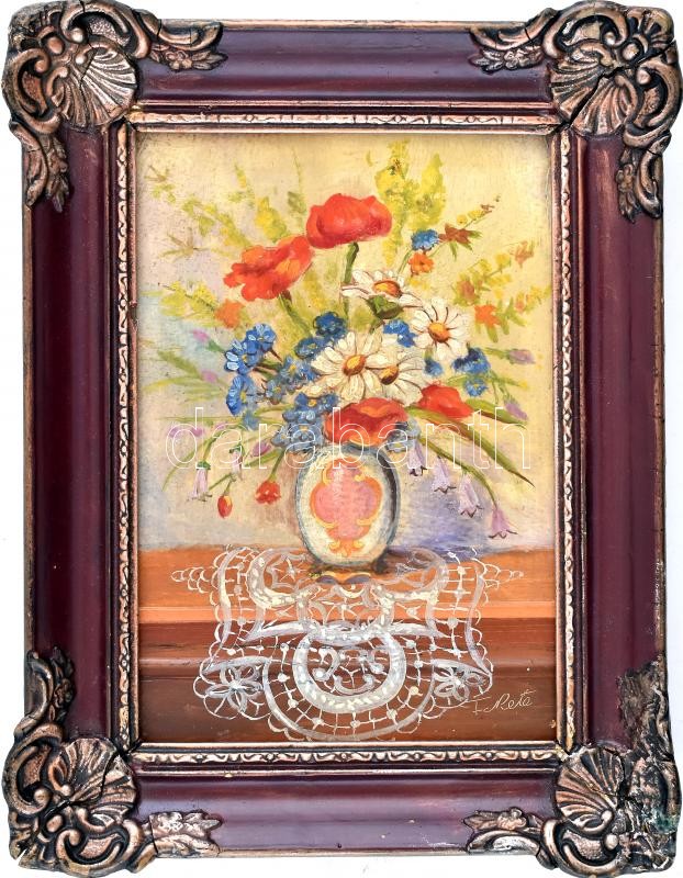 Olvashatatlan jelzéssel: Virágcsendélet. Olaj, karton. Dekoratív, kiss... https://www.darabanth.com/de/410-Fernauktion/410.0/Gemalde-und-Grafiken/Gemalde-und-Graphic-quot-signiertquot-quot-ohne-Signquot-~500002/Olvashatatlan-jelzessel-Viragcsendelet-Olaj-karton-Dekorativ-kisse-serult-fa-keretben-1~II2496131