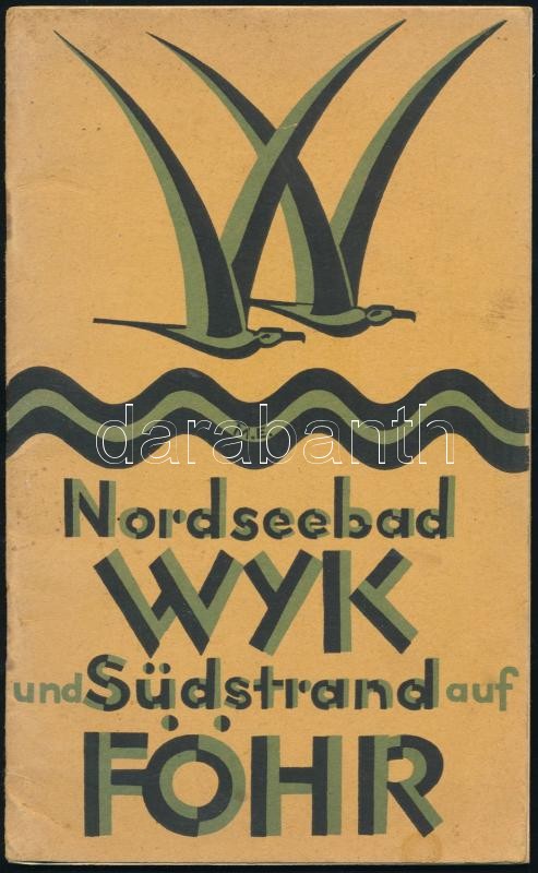 1926 Insel Föhr, Nordseebad Wyk und Südstrand. Führer für das Jahr 1926. Német nyelvű turisztikai ismertető. Fekete-fehér képekkel illusztrált. 40 p. Kiadói tűzött papírkötés, kissé sérült, foltos borítóval.