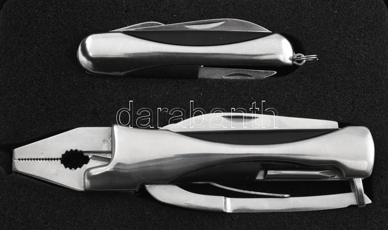 Beschreibung: Svájci bicska és szerszámkészlet vászontokban.