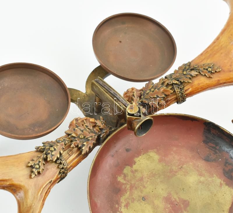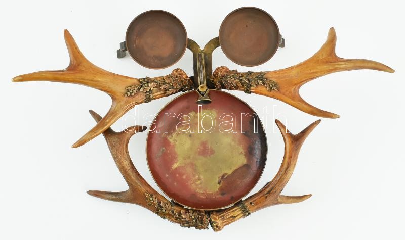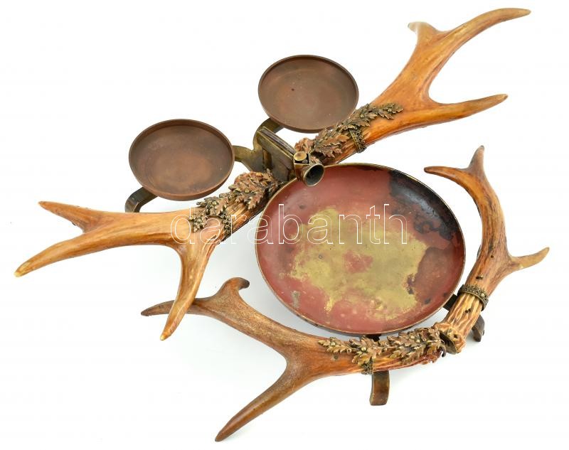 Vadász dohányzókészlet, agancs, bronz rátét, réz tálkák, 21x33cm https://www.darabanth.com/de/410-Fernauktion/410.0/Kunst-Dokumente-andere-Sammelgebiete/Flohmarkt~500015/Vadasz-dohanyzokeszlet-agancs-bronz-ratet-rez-talkak-21x33cm~II2551969
