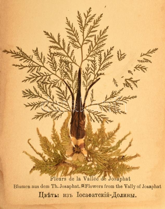 cca 1891 A Szentföld virágai fa-borítású füzet 12 szárított virággal 13 t. Sérült gerinc / Flowers of the Holy Land. 12 dried flowers in wood covered booklet damaged spine.