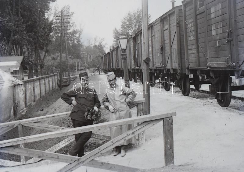 I. világháborús katonai felvételek (katonák gyakorlaton, támadásban, őrségben, vasútállomáson, csoportképen, lovon, kórházvonaton, sebesülten, stb.), 18 db vintage üveglemez NEGATÍV, 4,5x6 cm