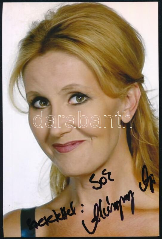 Beschreibung: Kökényessy Ági (1967-) színésznő aláírása az őt ábrázoló képen