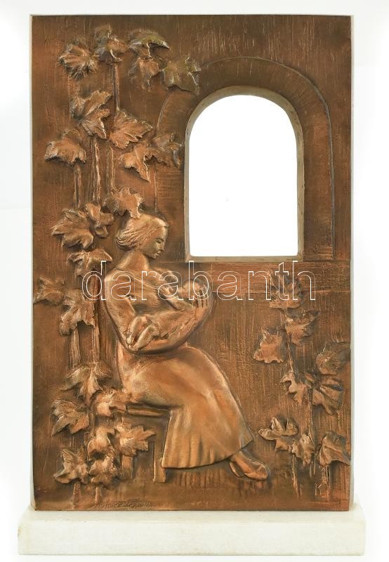 Beschreibung: R. Kiss Lenke (1926 - ): Anya gyermekével. Bronz, jelzett, márvány talapzaton, 35x22 cm talapzattal együtt