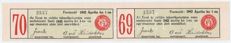 Beschreibung: Ercsi 1927. "Ercsi és Vidéke Takarékpénztára" névre szóló részvénye 10P-ről, szárazpecséttel, szelvényekkel T:III