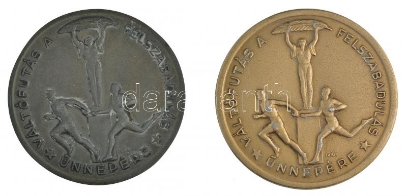 Iván István (1905-1968) 1951. "Váltófutás a felszabadulás ünnepére / Fővárosi Tanács - Budapesti Testnevelési és Sporttanács - 1951. IV. 4." 2xklf kétoldalas fém emlékérem "1961" gravírozással (66mm) T:2