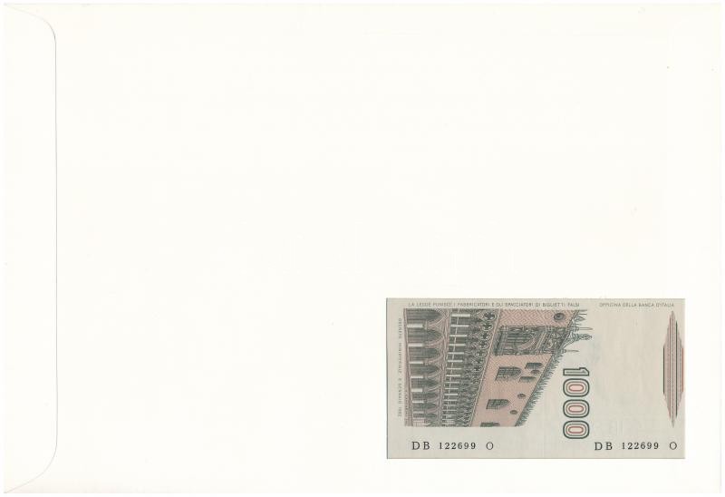 Olaszország 1982. 1000L felbélyegzett borítékban, bélyegzéssel T:I Ita... https://www.darabanth.com/de/410-Fernauktion/410.0/Numismatik/Umschlage-mit-Munzen-und-Banknoten~2000004/Olaszorszag-1982-1000L-felbelyegzett-boritekban-belyegzessel-TI-Italy-1982-1000-Lire-in-en~II2545411