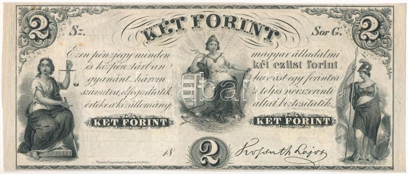 Hu... https://www.darabanth.com/de/410-Fernauktion/410.0/Numismatik/Ungarische-Banknoten~2000007/1852-2Ft-Kossuth-banko-G-kitoltetlen-TII-Hungary-1852-2-Forint-C-without-date-and-serial~II2549750