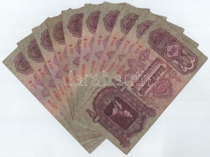 Beschreibung: 1930. 100P (10x) mind különféle sorozatszámmal T:III,III-