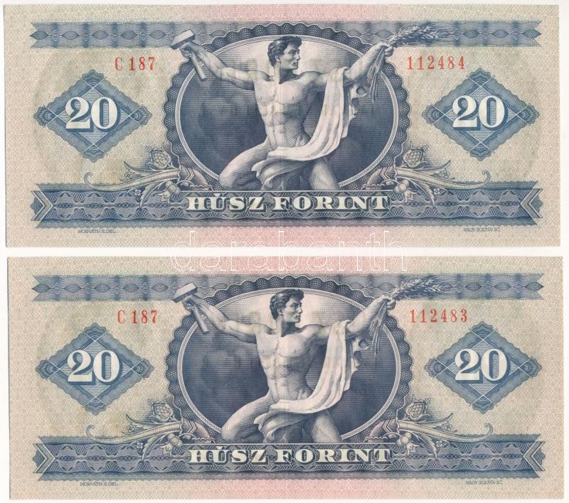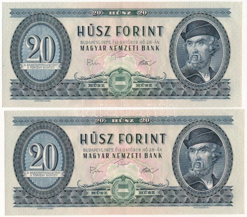 Beschreibung: 1975. 20Ft (2x, sorszámkövető) T:II