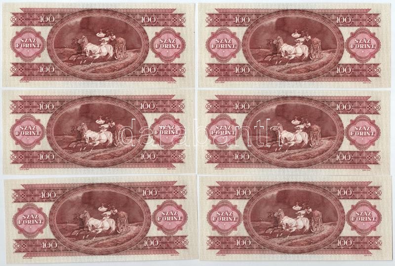 1992. 100Ft (6x, sorszámkövetők "B 016 055195 - B 016 055200"... https://www.darabanth.com/de/410-Fernauktion/410.0/Numismatik/Ungarische-Banknoten~2000007/1992-100Ft-6x-sorszamkovetok-B-016-055195-B-016-055200-TI-Adamo-F37~II2549539