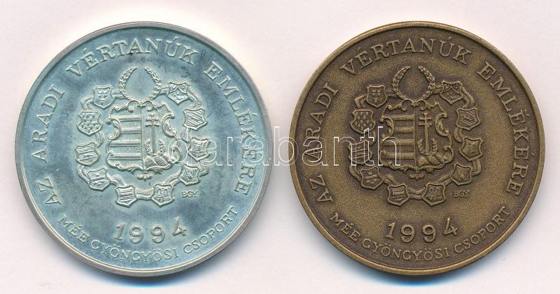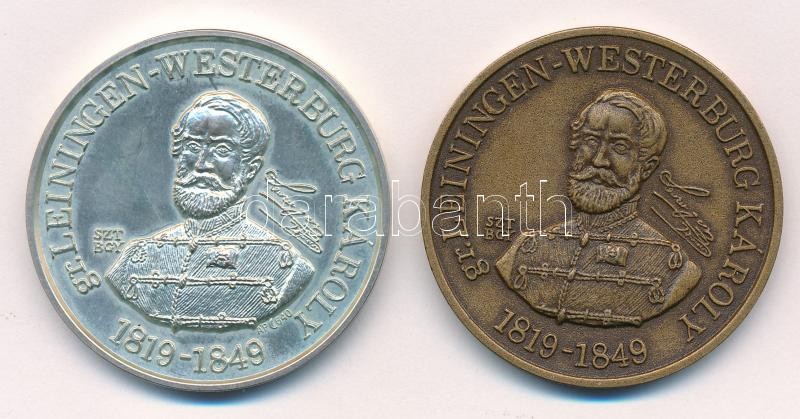 Bognár György (1944-) / Szabó Tamás (1952-) 1994. "MÉE Gyöngyösi Csoport - Aradi Vértanúk / gr. Leiningen-Westerburg Károly" Ag és Br emlékérem pár (34,60g/0.640/42,5mm) T:1- Adamo GS13