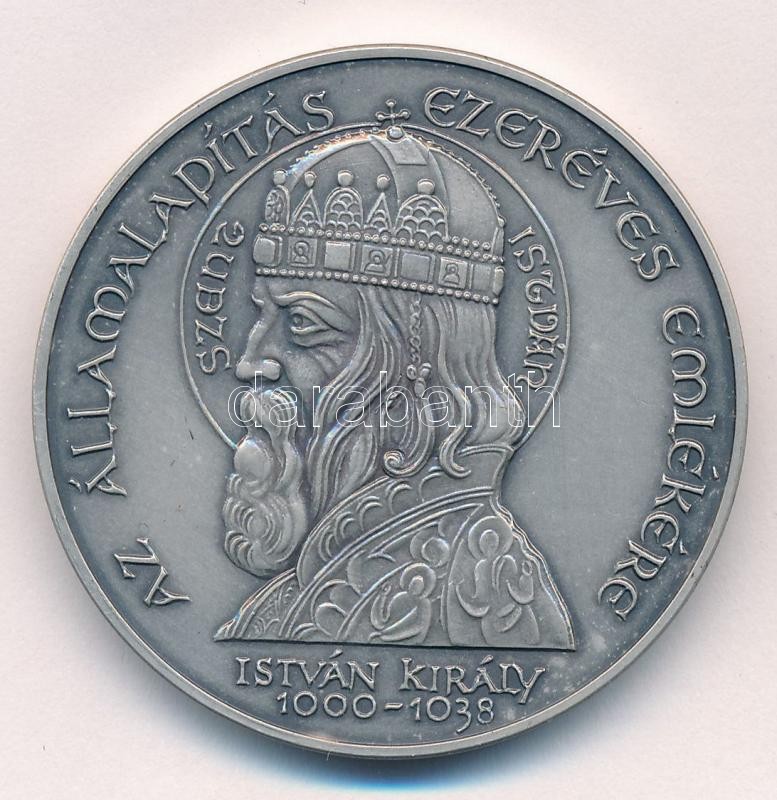 Fritz Mihály (1947-) 2000. "Az Államalapítás Ezeréves Emlékére - István király 1000-1038 / Magyar Millennium 2000" ezüstözött fém emlékérem (42,5mm) T:1-