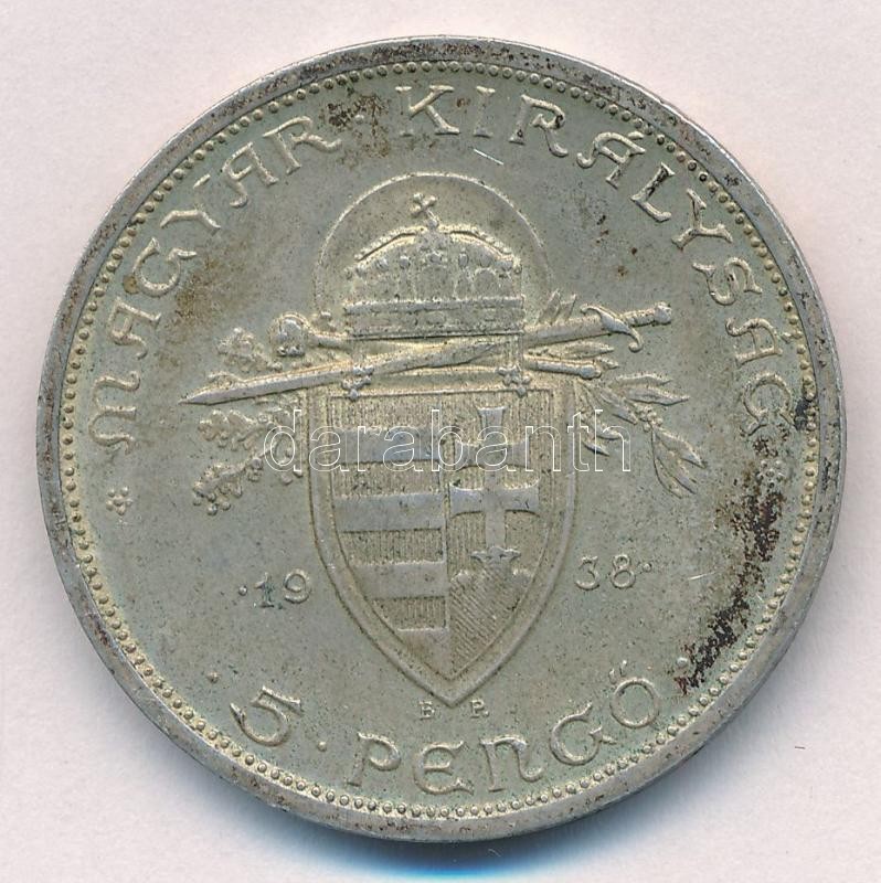 1938. 5P Ag "Szent István" T:2 patina Adamo P8.1 https://www.darabanth.com/de/410-Fernauktion/410.0/Numismatik/Ungarische-Munzen-und-Munzen-mit-ungarischem-Munzzeichen~2000008/1938-5P-Ag-Szent-Istvan-T2-patina-Adamo-P81~II2552218