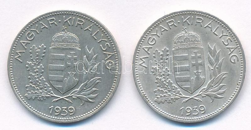 1939. 1P Ag (2x) T:1- patina Adamo P6 https://www.darabanth.com/de/410-Fernauktion/410.0/Numismatik/Ungarische-Munzen-und-Munzen-mit-ungarischem-Munzzeichen~2000008/1939-1P-Ag-2x-T1-patina-Adamo-P6~II2545533