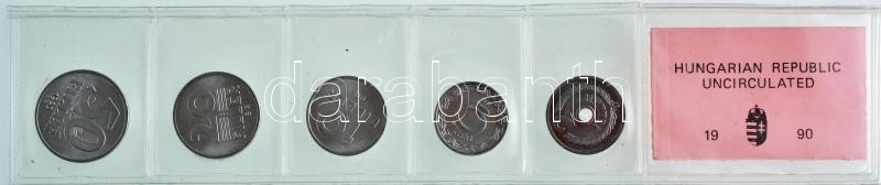 1990. 2f-50f (5xklf) forgalmi sor fóliatokban T:1 Adamo FO23 https://www.darabanth.com/de/410-Fernauktion/410.0/Numismatik/Ungarische-Munzen-und-Munzen-mit-ungarischem-Munzzeichen~2000008/1990-2f-50f-5xklf-forgalmi-sor-foliatokban-T1-Adamo-FO23~II2538168