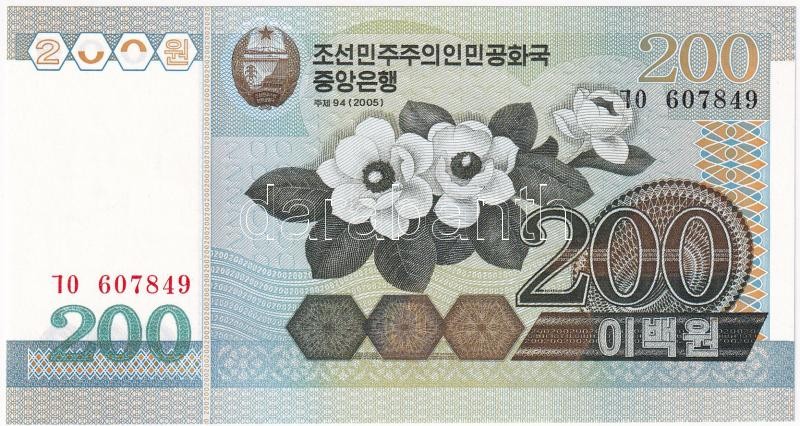 Észak-Korea 2005. 200W T:I- North Korea 2005. 200 Won C:AU Krause P#48 https://www.darabanth.com/de/410-Fernauktion/410.0/Numismatik/Weltweit-Banknoten~2000014/Eszak-Korea-2005-200W-TI-North-Korea-2005-200-Won-CAU-Krause-P2348~II2524265