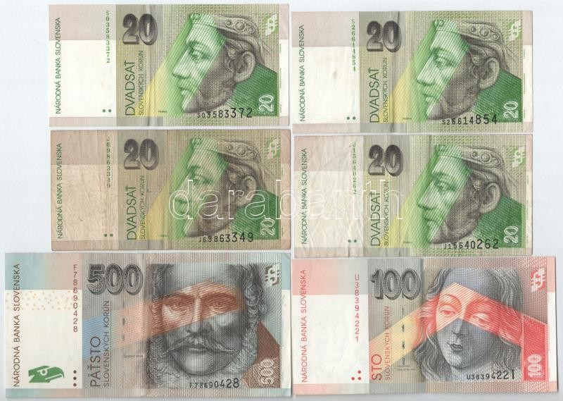 Szlovákia 1999-2001. 20K (4x) + 100K + 500K T:III Slovakia 2001. 20 Ko... https://www.darabanth.com/de/410-Fernauktion/410.0/Numismatik/Weltweit-Banknoten~2000014/Szlovakia-1999-2001-20K-4x-plus-100K-plus-500K-TIII-Slovakia-2001-20-Korun-4x-plus-100-Korun-plus-500-~II2544596