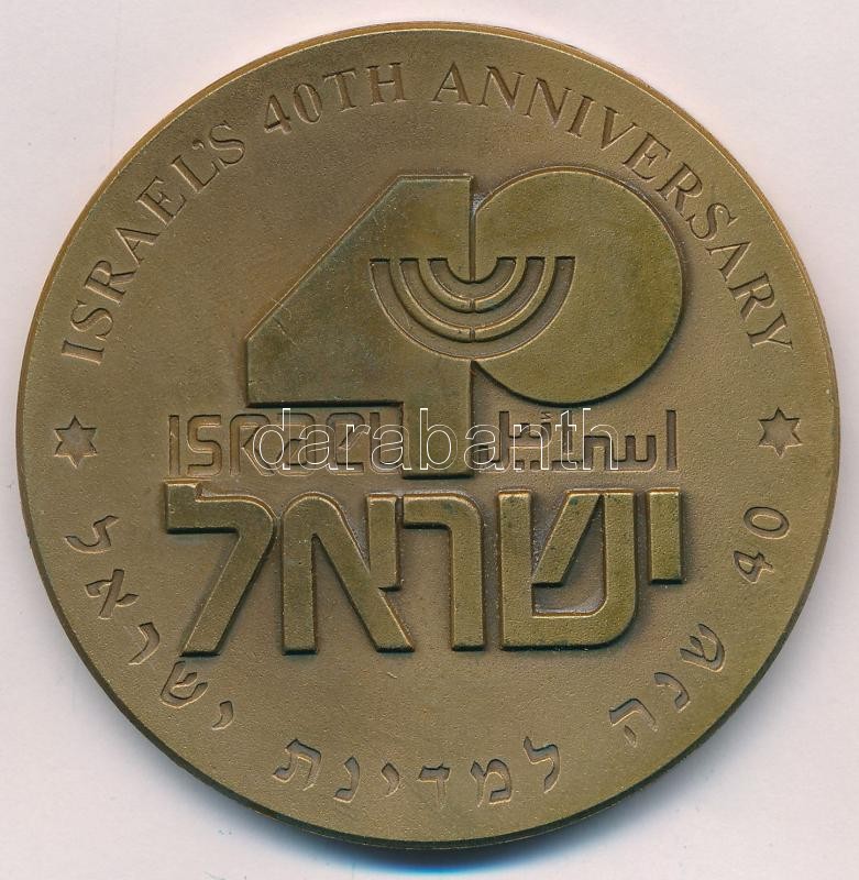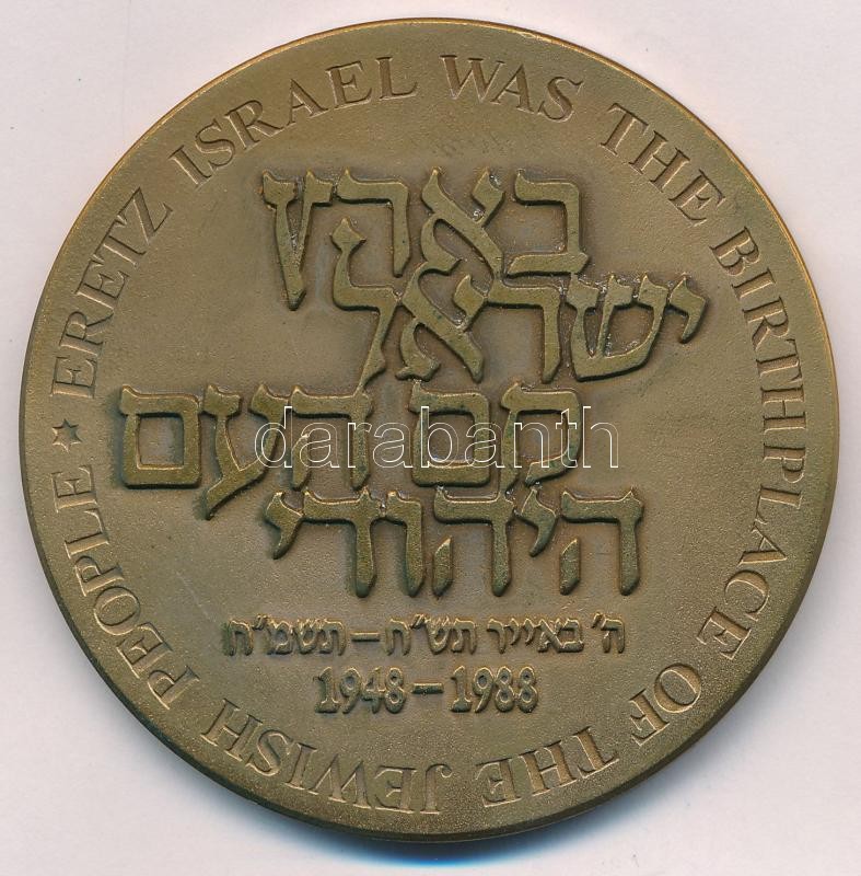 Izrael 1988. "Izrael 40. évfordulója" kétoldalas, bronz emlékérem, peremen jelzett és sorszámozott "2014", műanyag tokban (59mm) T:1 patina Israel 1988. "Israel's 40th Anniversary" double-sided bronze commemorative medallion, marked and numbered on edge "2014" in plastic case (59mm) C:UNC patina