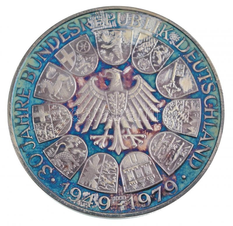 Német Szövetségi Köztársaság 1979. "30 éves a Német Szövetségi Köztársaság" jelzett Ag emlékérem, eredeti dísztokban (24,92g/0.999/40mm) T:1 (eredetileg PP) patina