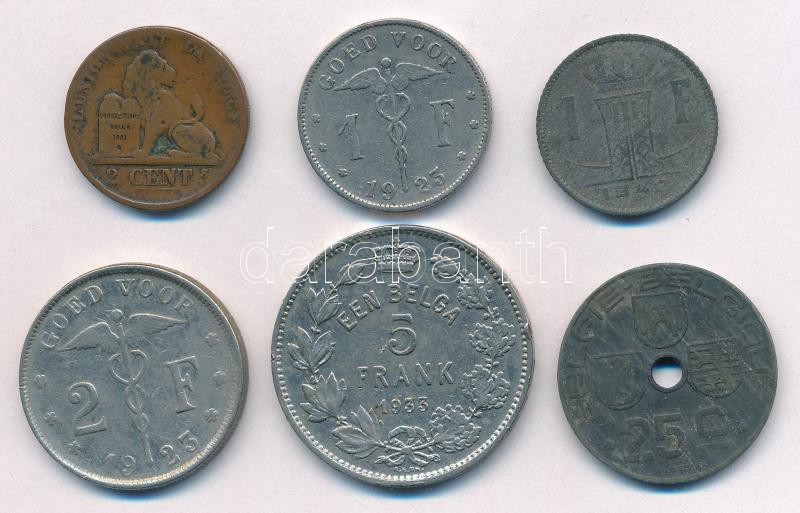 Belgium 1870-1944. 2c - 5Fr (6xklf) T:2-3 Belgium 1870-1944. 2 Cents - 5 Francs (6xdiff) C:XF-F