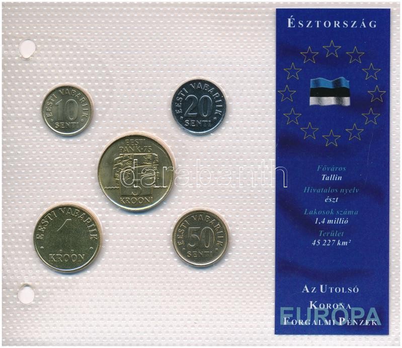 Észtország 1992-2003. 20s-5K (5xklf) "Európa utolsó pénzei" ... https://www.darabanth.com/de/410-Fernauktion/410.0/Numismatik/Weltweit-Munzen~2000015/Esztorszag-1992-2003-20s-5K-5xklf-Europa-utolso-penzei-vakuumcsomagolt-forgalmi-szett-T1~II2547750
