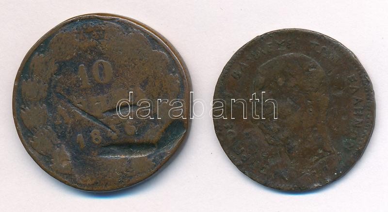 Görögország 1846. 10L Cu + 1882A 10l Cu "I. György" T:3- ü.