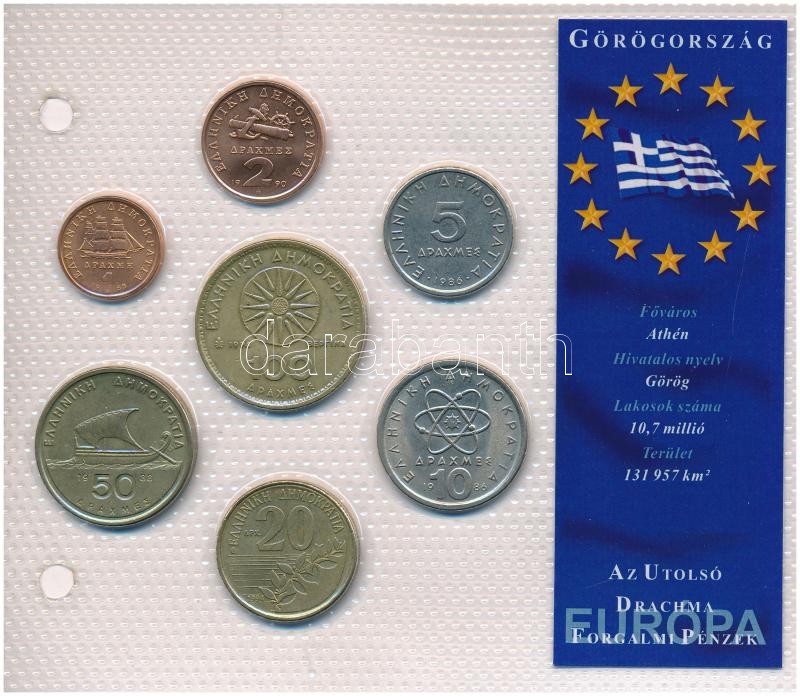 Görögország 1986-1994. 1D-100D (7xklf) "Európa utolsó pénzei"... https://www.darabanth.com/de/410-Fernauktion/410.0/Numismatik/Weltweit-Munzen~2000015/Gorogorszag-1986-1994-1D-100D-7xklf-Europa-utolso-penzei-vakuumcsomagolt-forgalmi-szett-~II2547726