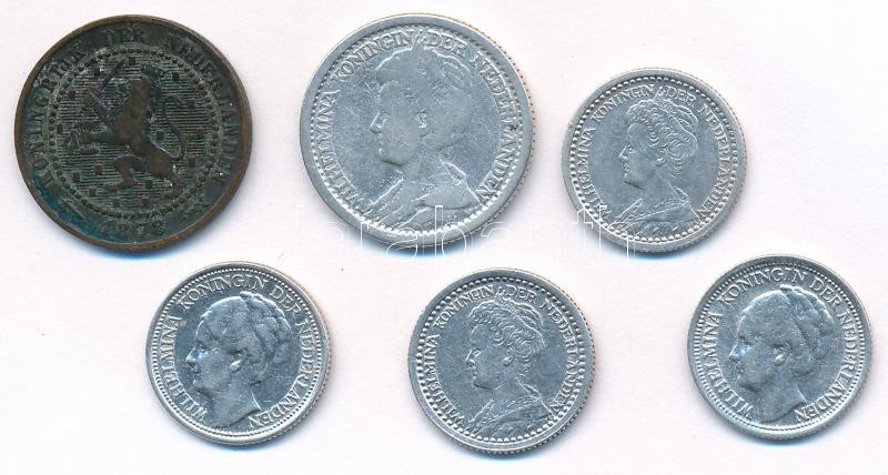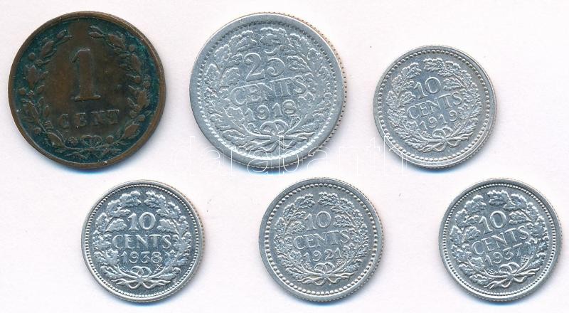 Netherlands 1878. 1 Cent Br + 1918. 25 Cent Ag + 1919-1938. 10 Cents Ag (4x) C:XF-F
