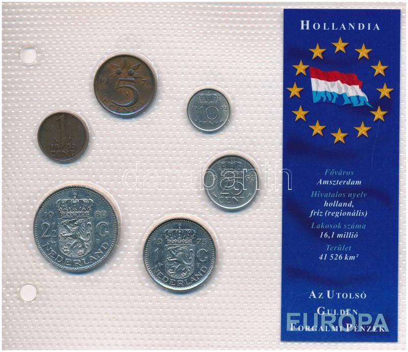 Hollandia 1952-1980. 1c-2 1/2G (6xklf) "Európa utolsó pénzei"... https://www.darabanth.com/de/410-Fernauktion/410.0/Numismatik/Weltweit-Munzen~2000015/Hollandia-1952-1980-1c-2-12G-6xklf-Europa-utolso-penzei-vakuumcsomagolt-forgalmi-szett-T2~II2547776