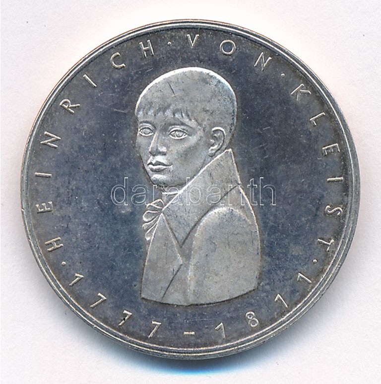 NSZK 1977G 5M Ag "Heinrich von Kleist születésének 200. évfordulója" T:1- (eredetileg PP) FRG 1977G 5 Mark Ag "200th Anniversary - Birth of Heinrich von Kleist" C:AU (originally PP) Krause KM#146