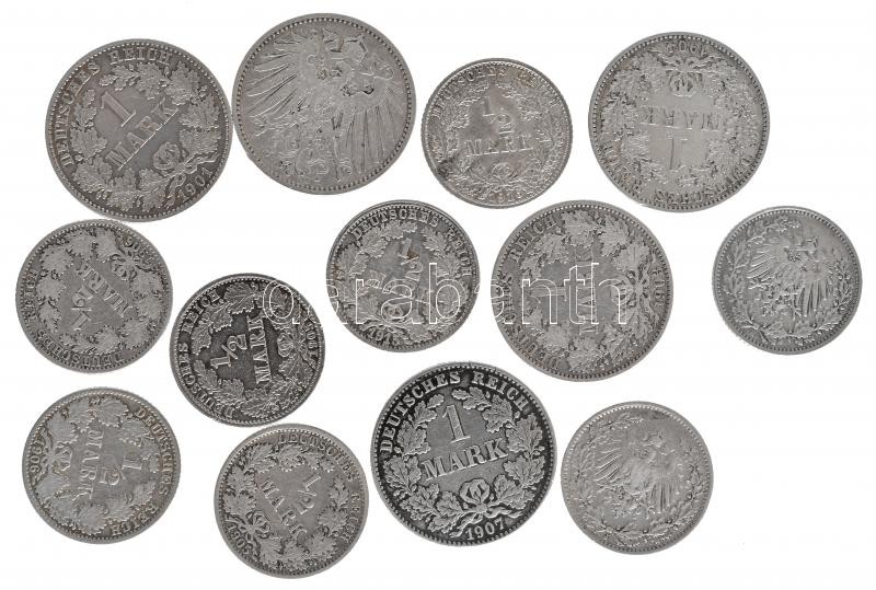 Német Birodalom 1892-1907. 1M Ag (5xklf) + 1905-1918. 1/2M Ag (8xklf) T:2-3 German Empire 1892-1907. 1 Mark Ag (5xdiff) + 1905-1918. 1/2 Mark Ag (8xdiff) C:XF-F