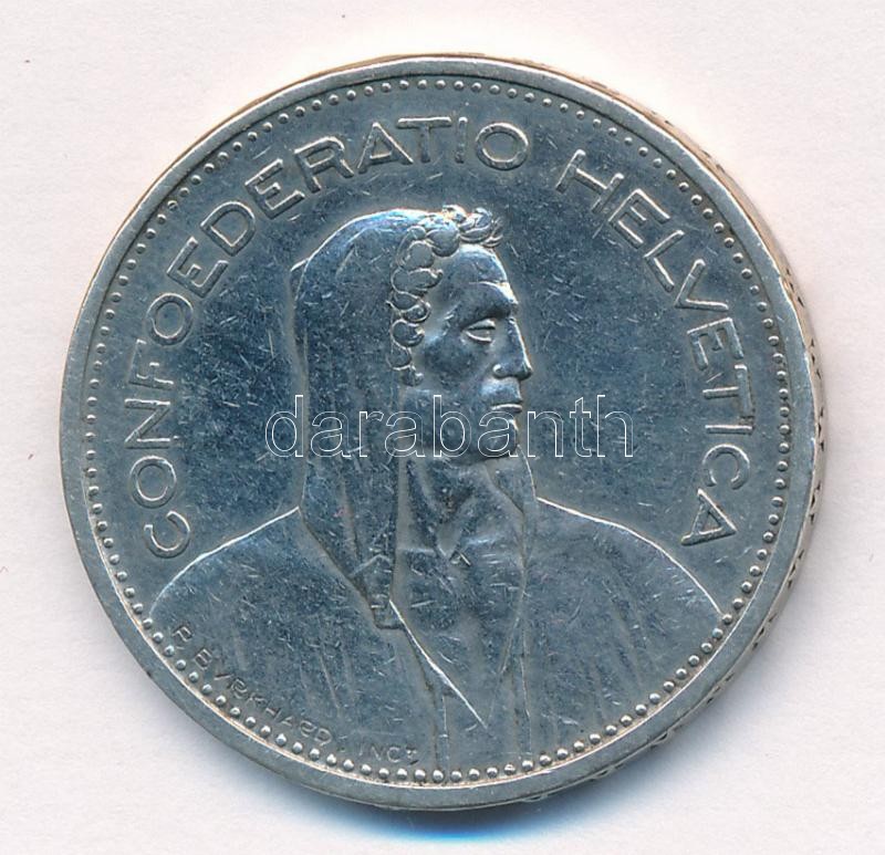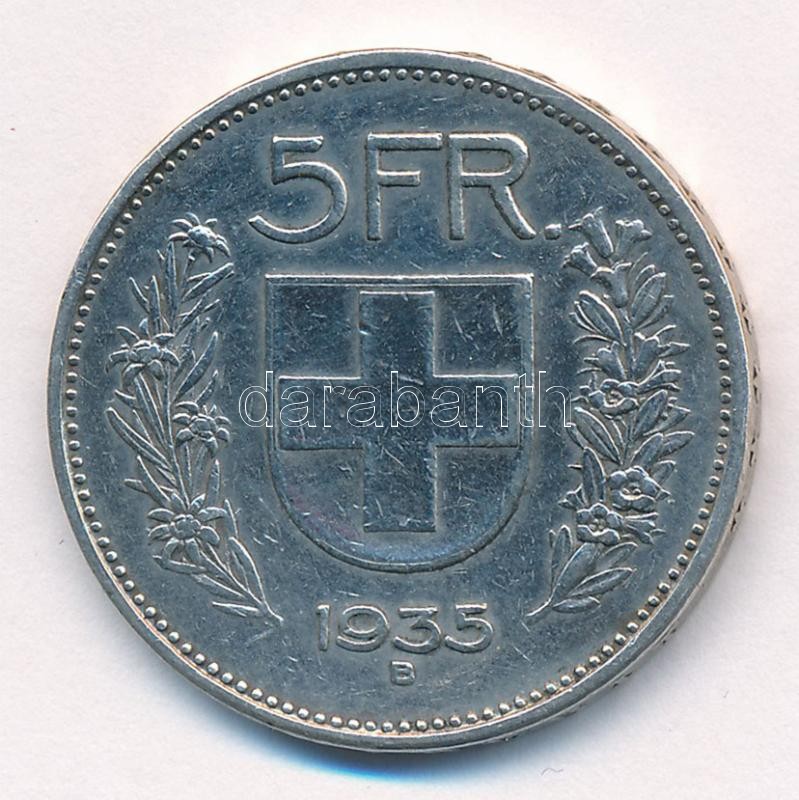 Svájc 1935B 5Fr Ag T:2 Switzerland 1935B 5 Francs Ag C:XF Krause KM#40 https://www.darabanth.com/de/410-Fernauktion/410.0/Numismatik/Weltweit-Munzen~2000015/Svajc-1935B-5Fr-Ag-T2-Switzerland-1935B-5-Francs-Ag-CXF-Krause-KM2340~II2550613