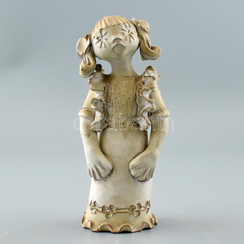Beschreibung: Kovács Éva (1938-): Álló lány, mázas kerámia, apró csorba, jelzett, m: 21cm