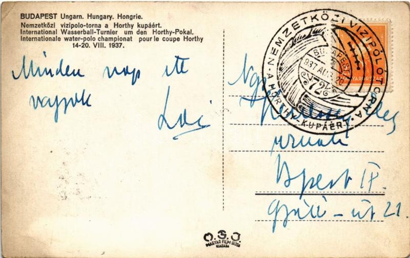 1937 Budapest XIII. Margitsziget, Nemzetközi vízipóló (Vízilabda) torna a Horthy kupáért, sport / International water polo championship + So. Stpl (EK)