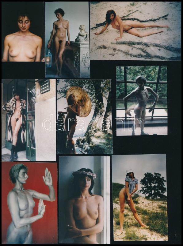 cca 1997 előtt készült felvételek, Menesdorfer Lajos (1941-2005) budapesti fotóművész hagyatékából, 9 db jelzés nélküli, profi vintage fotó Zsuzsáról, a profi modellről, 6,5x10,2 cm és 6,7x4,8 cm között