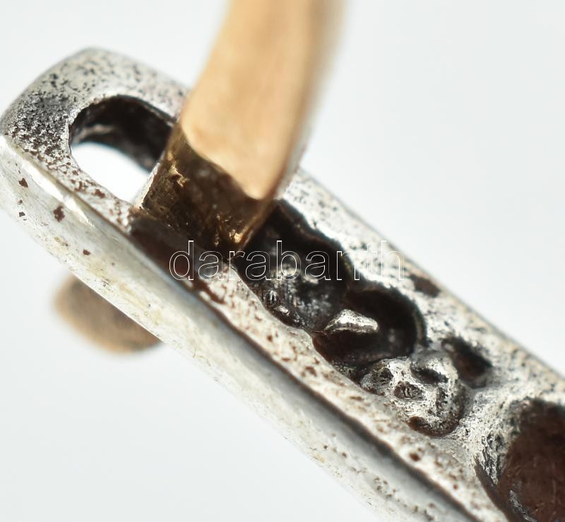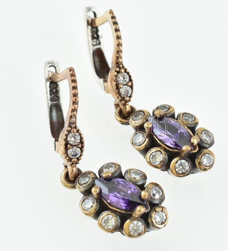 Beschreibung: Aranyozott ezüst(Ag) fülbevalópár lila kővel, jelzett, h: 3 cm, bruttó: 6,4 g