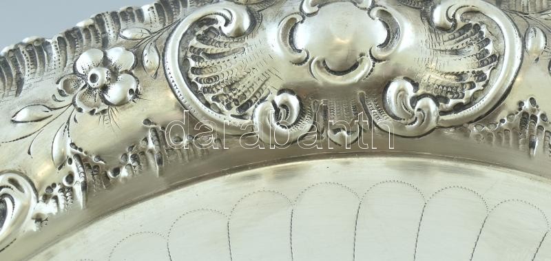 Ezüst (Ag) Neorokokó áttört peremű tálca, apró horpadásokkal,