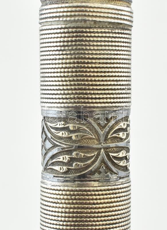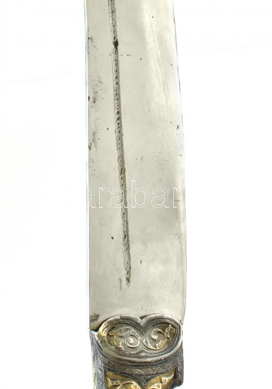 Beschreibung: Ezüst (Ag) markolatú, niellózott kozák szablya, jelzés nélkül, a penge feltehetően pótolt, kopásokkal, horpadásokkal, Kaukázus 1880 körül. h:45,5cm